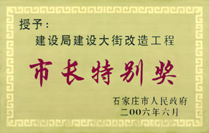 我公司2006年承建的建設大街工程,10個月的工期僅用100天便優(yōu)質高效地完成了施工任務,獲石家莊市“市長特別獎”。