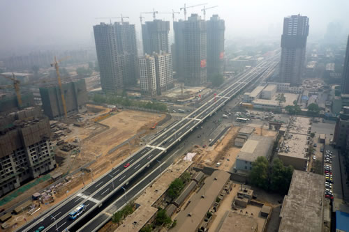 | 和平路是石家莊市北翼東西向的一條城市主干道,是石家莊市總體規(guī)劃中的“四橫”之一。和平路跨線(xiàn)橋(紅軍街——棉一立交橋)工程始于紅軍大街,跨越中華大街、九中街、北新街、車(chē)輛廠前街、京廣線(xiàn)、勝利大街、平安大街、長(zhǎng)征街后與棉一立交橋連接,高架橋全長(zhǎng)3616米。 由我公司承建的一標(biāo)段西起紅軍大街,東止于北新街東220米,總長(zhǎng)1621.267m,由高架橋梁、道路、排水管道、道路照明等工程項(xiàng)目組成,是全線(xiàn)三個(gè)標(biāo)段中工程量最大的標(biāo)段。2009年4月30日主橋主路正式通車(chē),比預(yù)定工期提前了10個(gè)月。 “和平路跨線(xiàn)橋工程的建成通車(chē),標(biāo)志著省會(huì)城市基礎(chǔ)設(shè)施建設(shè)翻開(kāi)嶄新的一頁(yè),對(duì)完善市區(qū)路網(wǎng)結(jié)構(gòu)和改善市民出行環(huán)境、進(jìn)一步改善城市面貌意義重大。”---燕趙晚報(bào) 2009年5月1日 頭版