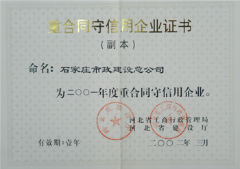 2001年重合同守信譽(yù)單位